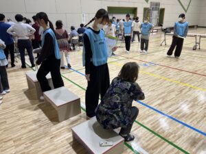 10cm、20cm、30cm、40cmと段差の高さを変えながら「どこまで立ち上がれるかな?」と挑戦!