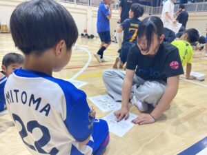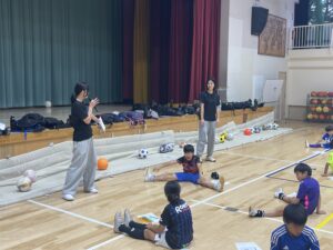 本校では、約40名のサッカージュニアチームの選手たちに向けて、 パフォーマンスチェックの振り返り・セルフケアの方法・トレーニングのポイントをお伝えしてきました!