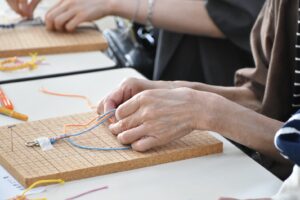 こちらも学生達が丁寧に教えてくれていましたので、小さいお子さんも作り上げることができ、喜ばれていました。
